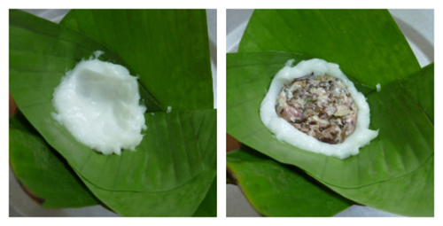 Gói bánh giò cần phải khéo tay thì bánh mới đẹp và ko bị hở |