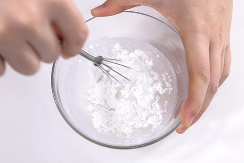 Trộn 40ml nước với bột nếp rang cho nhuyễn mịn và để qua một bên.