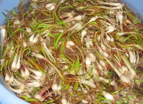Ngâm nước là bước sơ chế đầu tiên cho món kiệu chua |
