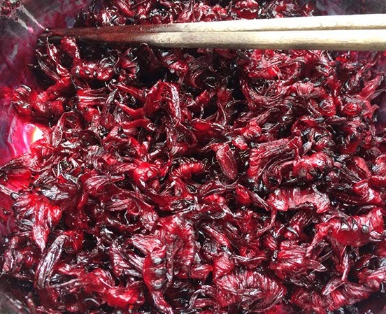 Bước 4: Bạn hãy ngâm hoa từ 3-5 ngày cho đường tan hết ra. Sau đó bạn vớt cánh hoa ra khỏi bình và xao cánh hoa trên bếp với lửa nhỏ. Bạn chú ý đảo hoa đều tay để hoa không bị cháy. Khi bạn đã thấy cánh hoa quắt lại, ăn thử thấy giòn và có vị thanh thì bạn tắt bếp đi. Như vậy là bạn đã có món mứt thơm ngon rồi.