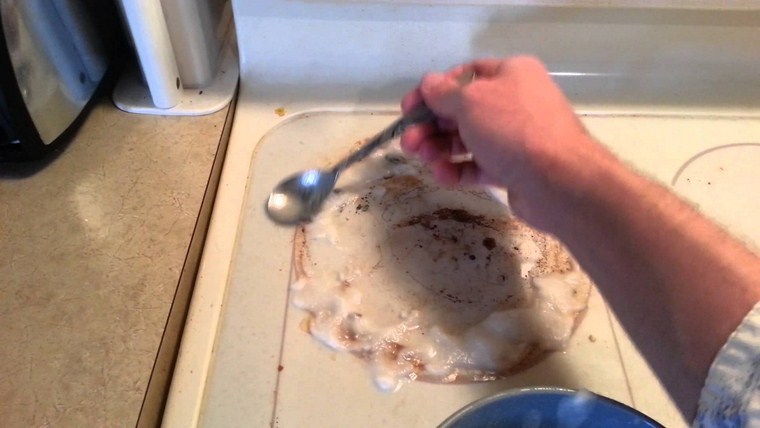 Loại bỏ vụn thức ăn trên bếp: Hãy dùng một chiếc chổi nhỏ hoặc cọ quét sạch xung quanh, bên dưới bếp và rãnh ngay kiềng bếp để đảm bảo rằng không còn sót lại bất cứ vụn thức ăn nào. Vì trong khi nấu có thể chúng sẽ bị cháy khét và bám chặt vào bếp, rất khó để tẩy rửa sau này.
