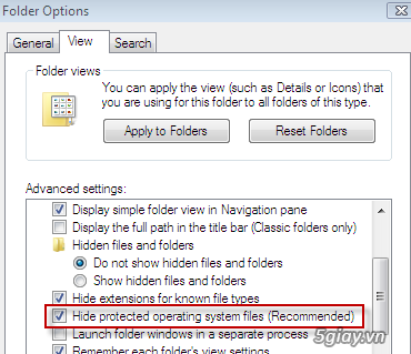 Do virus thường là các file dạng file hệ thống nên bình thường khi bạn chưa cho hiển thị thì bạn sẽ không nhìn thấy được. Vì vậy bạn hãy cho hiển thị tất cả các file hiện có trong máy tính bao gồm các file ẩn và file hệ thống (trong đó có các file người dùng, các file đã được thiết lập thuộc tính ẩn và các file hệ thống máy). Bạn sẽ nhìn thấy được các file virus có trong usb, sau đó bạn có thể tiền hành xóa các file này để loại bỏ ngay virus.