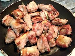 Bước 4: Đun nóng dầu ăn trong chảo, cho từng miếng sườn vào rán vàng, gắp ra bát để riêng.