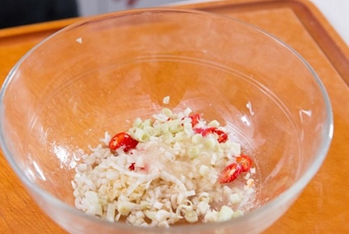 - Bước 3: Cho tôm ra, rắc tỏi sả ớt lên trên rồi xếp ít rau ngò trang trí. Món này ăn cùng cơm nóng rất ngon.