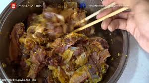 - Bước 1 (sơ chế nguyên liệu): Rửa sạch thịt vịt với nước rồi đem xát muối và rượu trắng, sau đó rửa sạch lại với nước nhiều lần để khử mùi hôi. Tiếp tục rửa lại thịt vịt với rượu trắng, sau đó rửa dưới vòi nước