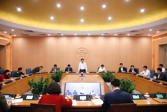 Cuộc họp Ban chỉ đạo phòng chống dịch Covid-19 TP.Hà Nội chiều tối 16/3. Ảnh: VietNamNet |