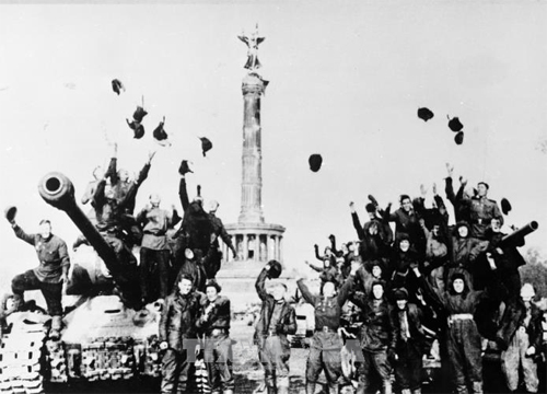Các chiến sĩ Hồng quân Liên Xô vui mừng với chiến thắng tại Berlin, sào huyệt cuối cùng của phát xít Đức trong Chiến tranh Thế giới lần thứ hai. Ảnh: Tư liệu TTXVN |