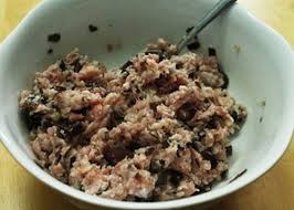 Ướp thịt với bột ngọt, muối, tiêu, nấm hương, mộc nhĩ, hành lá, hành khô, tỏi bằm, rau mùi.