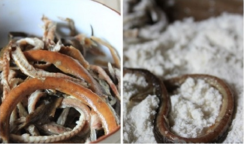 – Khi rán lươn, không cho quá nhiều lươn một lúc sẽ khiến lươn dính hết vào nhau, dầu sẽ mất nhiệt khiến lươn không thể giòn.