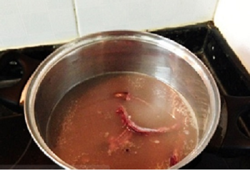 Cho đầu và xương lươn vào nồi nước ninh cùng hành củ và gừng nướng để ra nước cốt ngọt chan miến. Nêm thêm muối cho vừa miệng. Khi nước bắt đầu sôi, hạ nhỏ lửa cho sôi liu riu và vớt hết sạch bọt bẩn nổi lên cho nước dùng được trong.