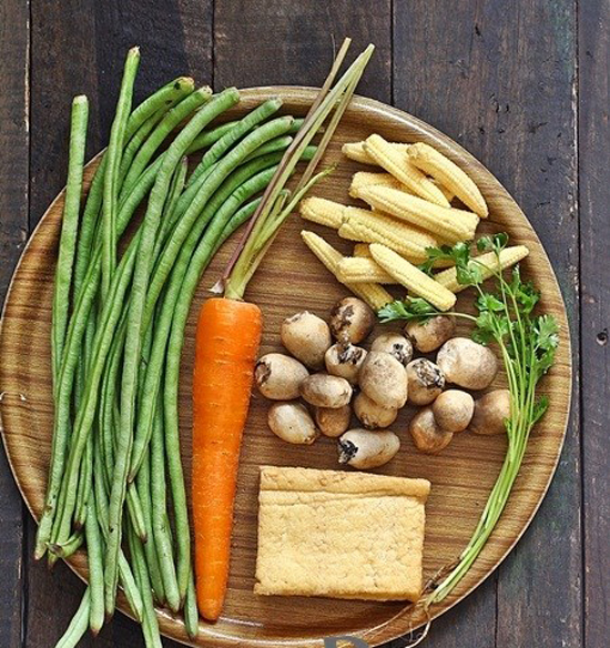 - Bước 1: Để làm được món chay rau củ này, trước tiên, bạn cần sơ chế các nguyên liệu. Đối với các loại rau củ bao gồm su hào, củ cải trắng, cà rốt, bạn cần gọt vỏ, làm sạch và thái miếng vừa vặn. Riêng cà rốt, bạn có thể cắt thành hình hoa, để cho đẹp mắt và nhìn món ăn hấp dẫn hơn.