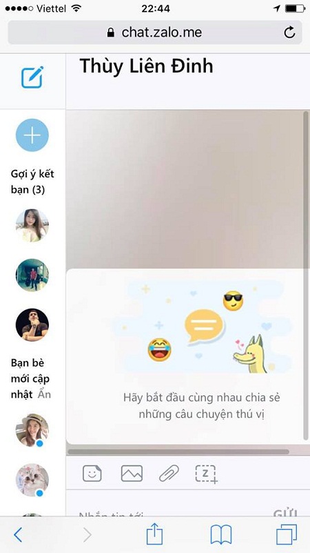 Chúng ta hãy cùng thử chat Zalo nào. Các tính năng chat trên nền web cũng giống như trên ứng dụng vậy, hỗ trợ chat nhóm, sticker, ảnh gif, gửi tệp, gửi ảnh,...