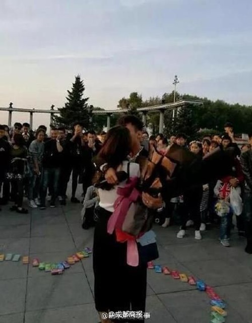 Sau lời tỏ tình độc đáo đó, một tràng vỗ tay vang lên. Cô gái bắt đầu rơi những giọt nước mắt và ôm lấy chàng trai. Cô gái đã nhận lời tỏ tình của anh chàng này. Chàng trai vui mừng cầm micro nói: “Tất cả mọi người có thể lấy bao cao su miễn phí”. Ngay sau câu nói đó, đám đông nhanh chóng lao đến và cuỗm lấy 999 hộp bao cao chỉ trong vòng 30 giây. Thậm chí một số cô gái còn lấy đi nhiều hộp bao cao su mà chẳng chút ngại ngần.