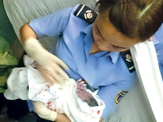Vẻ đáng yêu của em bé được sinh trên tàu. |