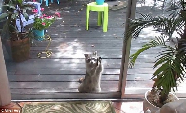 Gấu trúc mẹ đã dùng một viên sỏi và liên tục gõ vào cửa để tạo tiếng động thu hút sự chú ý của chủ nhà để xin thức ăn.