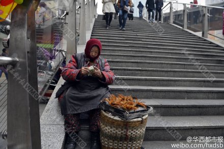Đã 12 năm qua, cụ Chen, 86 tuổi, hàng ngày đều đi bán cầu đá bằng lông gà tại một con phố ở Thành Đô, Trung Quốc để lấy tiền chạy chữa cho con trai mắc bệnh thận. Câu chuyện của cụ đã được chia sẻ trên mạng và nhận được sự cảm thông của nhiều người.