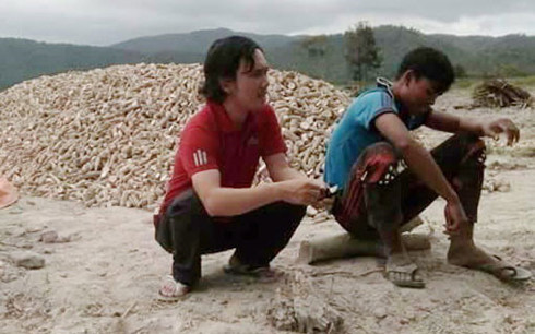 Thầy Ninh Văn Dậu (áo đỏ) vượt rẫy để thuyết phục Ksor Gôi - cậu học trò người Jarai trở lại lớp (ảnh: báo Tuổi trẻ) |