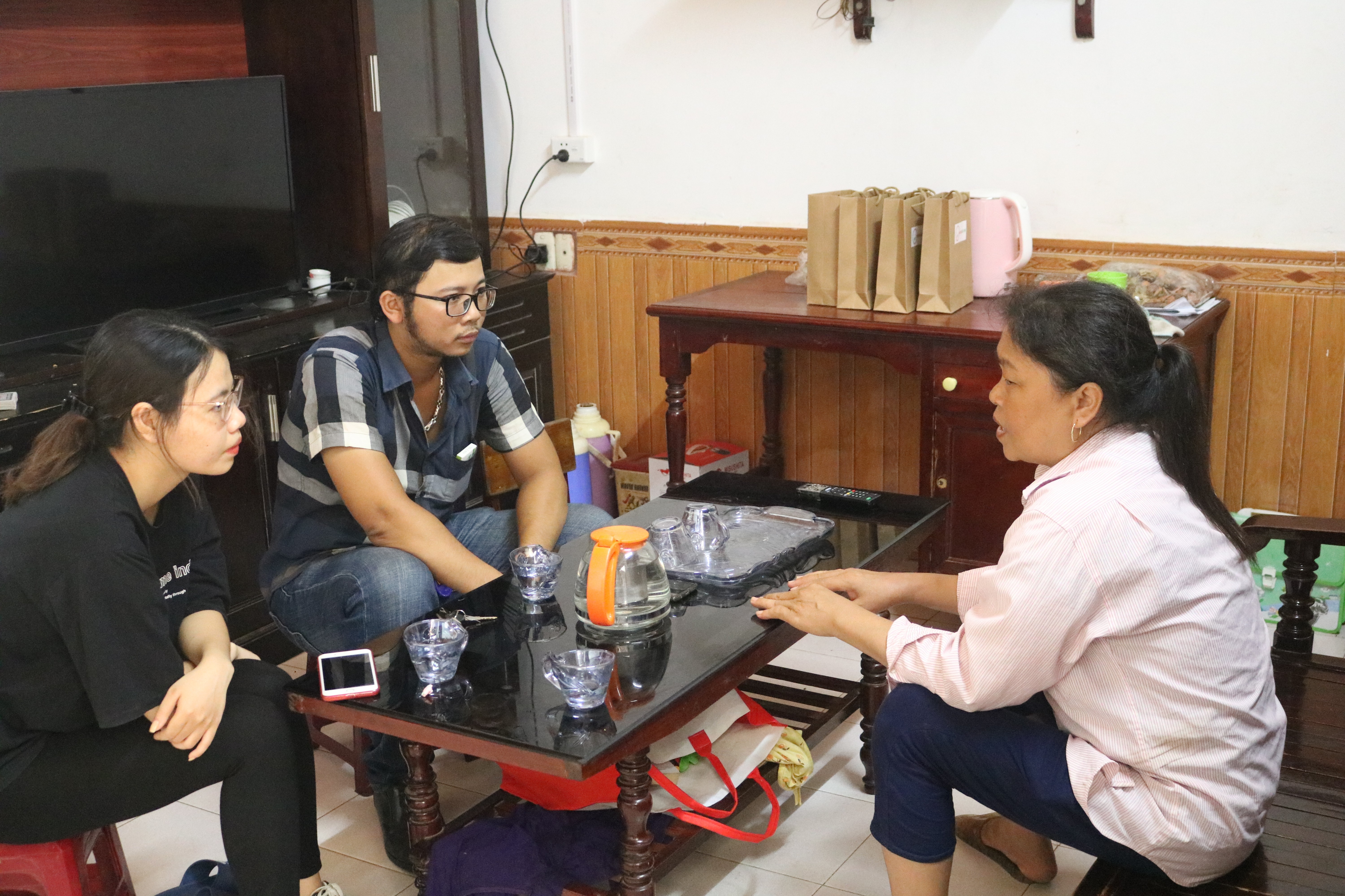 Đang lúi lúi chuẩn bị bữa trưa, nghe các con báo có khách đến thăm, cô Ngọc tất tả chạy ra tiếp đón. Nở nụ cười đôn hậu cô Ngọc đon đả mời chúng tôi vào nhà.