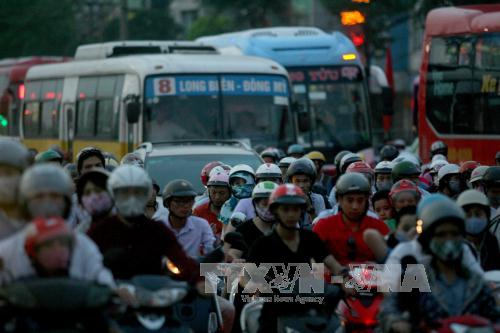 | Tuyến đường Giải Phóng cạnh bến xe Nước Ngầm và Giáp Bát thường xuyên bị ùn tắc. Ảnh: Huy Hùng/TTXVN |