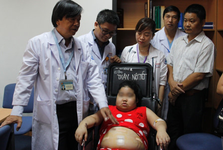 Lúc này, gia đình đã đưa cao huyết áp vào khám ở Bệnh viện Nguyễn Tri Phương và sau đó nhập viện Bệnh viện Nhi đồng 1, TP HCM. Sau khi là tất cả các xét nghiệm, bệnh nhi được chẩn đoán mắc bệnh lý tăng cân bất thường và cushing, còn gọi là tăng tuyến đường thận.
