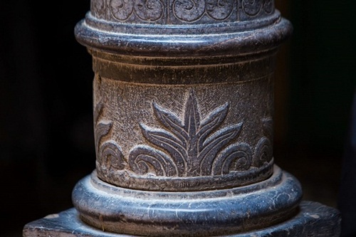 Điểm nhấn của căn nhà chính là 4 cột đá nguyên khối được chạm khắc tinh xảo với họa tiết “Đào – Cúc – Trúc – Mai” mang ý nghĩa về sự thịnh vượng, may mắn, giàu sang cho gia đình.