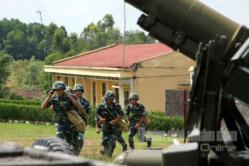 | Các pháo thủ nhanh chóng cơ động về vị trí chiến đấu |