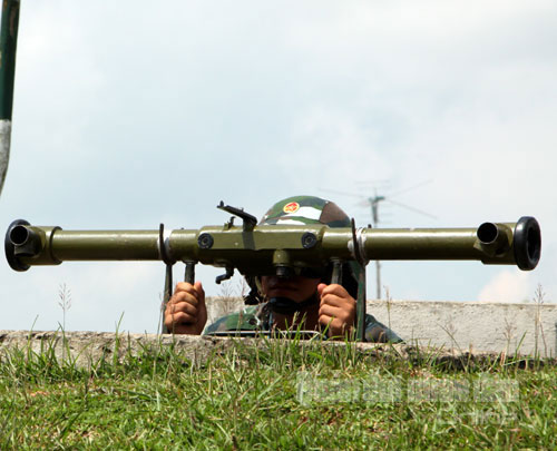 | Chỉ huy đại đội với khẩu lệnh dõng dạc, dứt khoát, chỉ huy các khẩu đội nhanh chóng bắt, bám sát mục tiêu. |