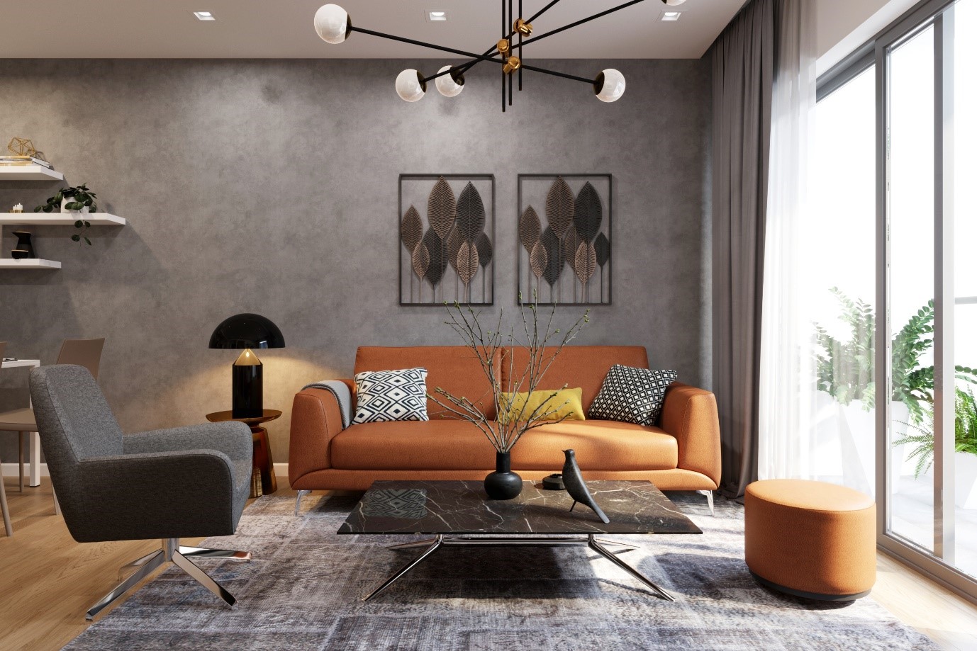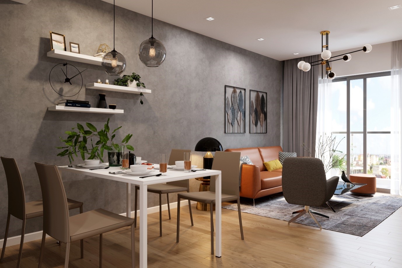 Với phong cách thiết kế hiện đại sang trọng nhưng vẫn nổi bật sắc màu đầy cá tính, căn hộ 2 phòng ngủ được thiết kế với phòng khách ngập tràn ánh sáng tự nhiên, đem lại không gian tràn đầy sức sống.