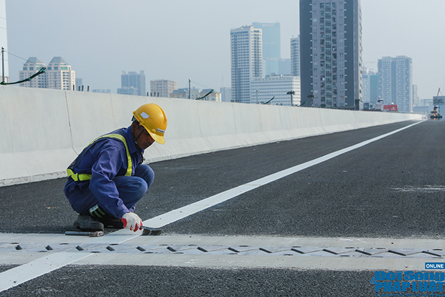 Hiện các công nhân đang tiến hành công tác sơn kẻ vạch. |