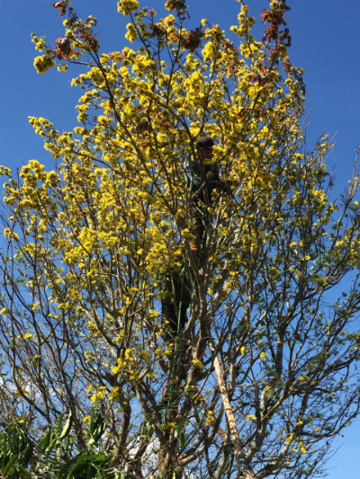 Nhánh lớn của cây mai song thân nở hoa dịp sát Tết. Ảnh: VnExpress |