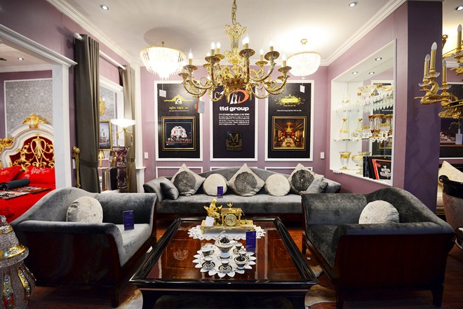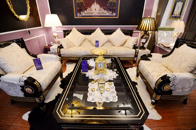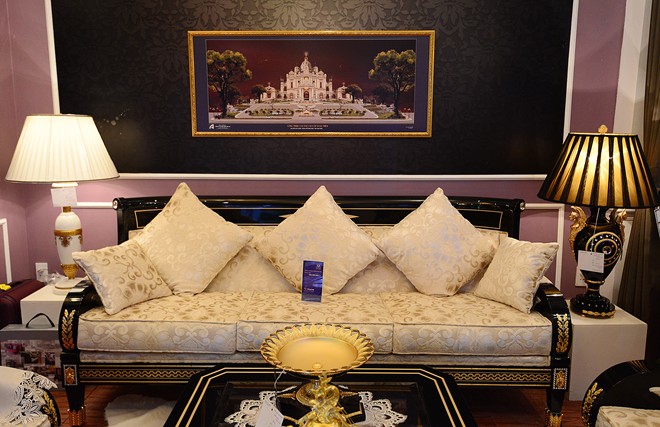 Xuất hiện tại một cuộc triển lãm nội thất ở Hà Nội, ngoài bộ bàn ghế trên còn nhiều sản phẩm cao cấp, đắt đỏ khác. Bộ bàn ghế sofa này có giá 1,1 tỷ đồng. |