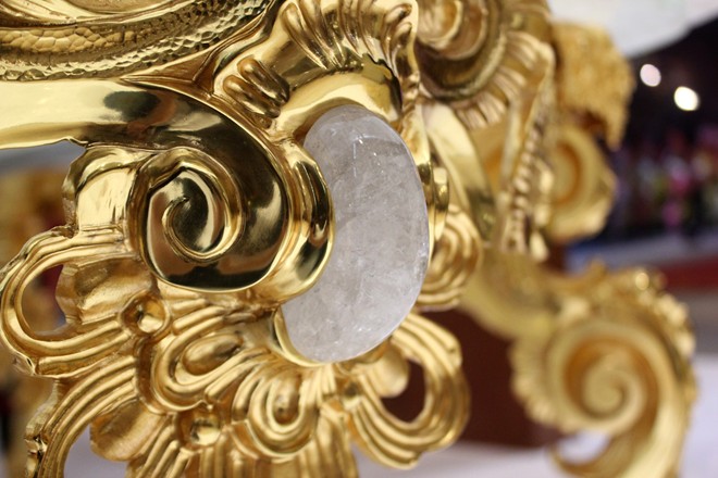Đồng hồ bằng đồng đi kèm cũng được đúc thủ công, mạ vàng 24K, giá hơn 200 triệu đồng. |