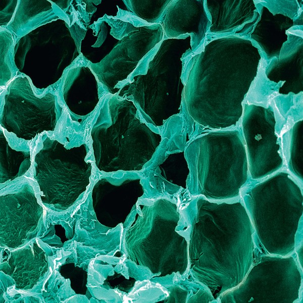 Các tế bào mỡ là một trong những tế bào lớn nhất trong cơ thể con người. Chúng tạo ra các lớp tích trữ năng lượng dưới da. Trong bức ảnh chụp này, phần chất béo trong các tế bào đã được loại bỏ. Các tế bào này sẽ lại được lấp đầy khi chúng ta béo lên.