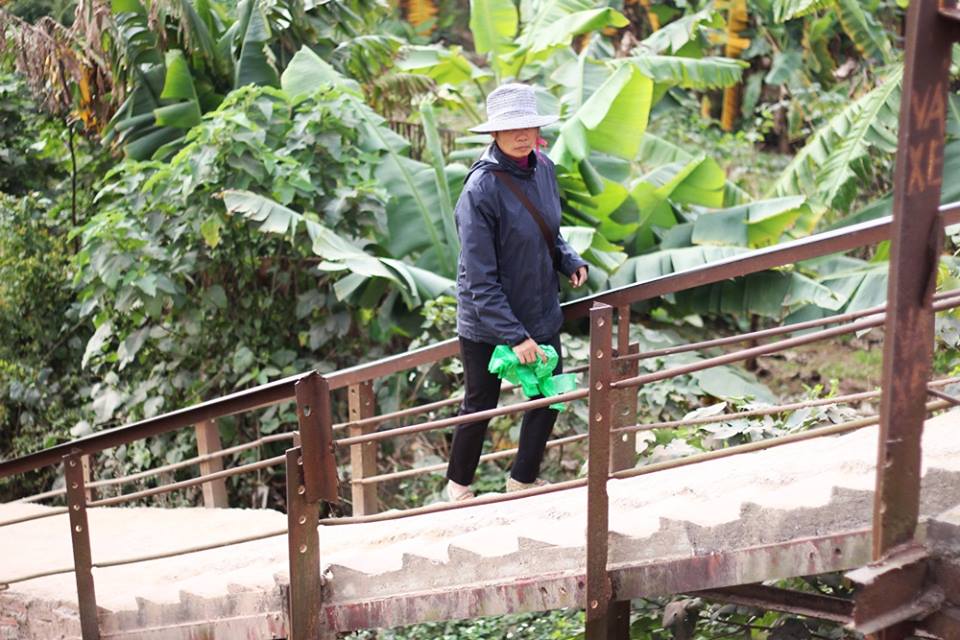 Không chỉ vậy, do trải qua thời gian nên đoạn thành phía tay trái (đi từ trên xuống) đã bị gãy mất thanh sắt chính (dài khoảng 2m4) khiến những người dân lên xuống đây đã gặp nguy hiểm nay càng nguy hiểm hơn.
