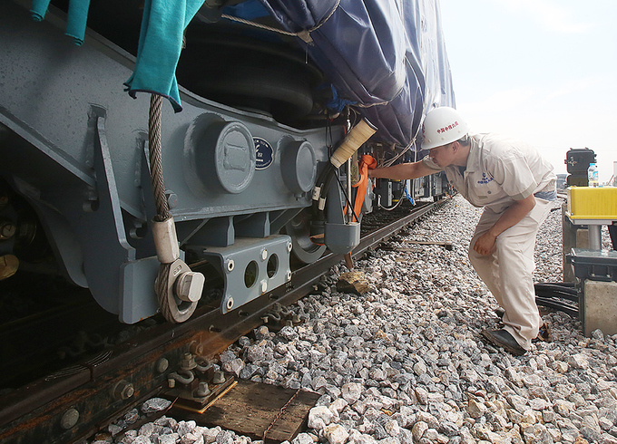 Nhân viên kỹ thuật kiểm tra chi tiết khi các toa tàu được đặt vào đường ray - Ảnh: báo VnExpress |