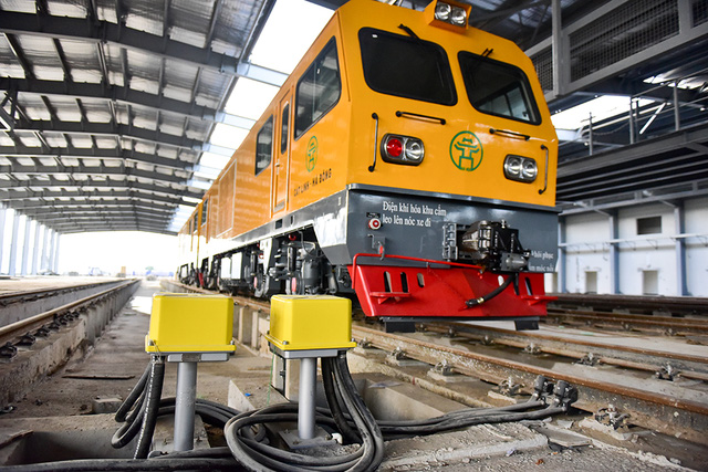 Toa xe kỹ thuật bên trong nhà ga depot, từng được chạy thử trên đường ray trên cao cách đây ít ngày - Ảnh: báo Dân trí |