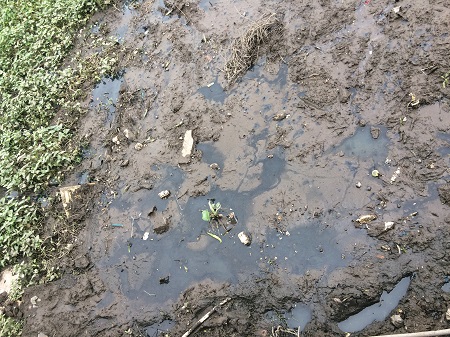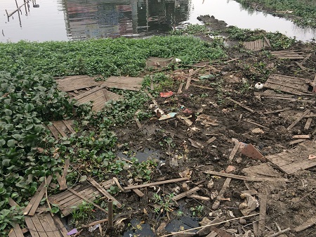 Ven hồ, bùn lầy kéo dài cả chục mét, dòng nước quanh khu vực đen ngòm, rác thải sinh hoạt nổi lềnh bềnh bốc mùi hôi thối khó chịu, làm mất cảnh quan đô thị. Quanh khu vực tháo dỡ, đồ đạc chất đống, ngổn ngang trên vỉa hè.