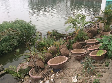 | Các nhà nổi vẫn đang trong quá trình tháo dỡ, đồ đạc chất đống vất ngổn ngang trên vỉa hè, cây cảnh vất ngay tại ven hồ. |
