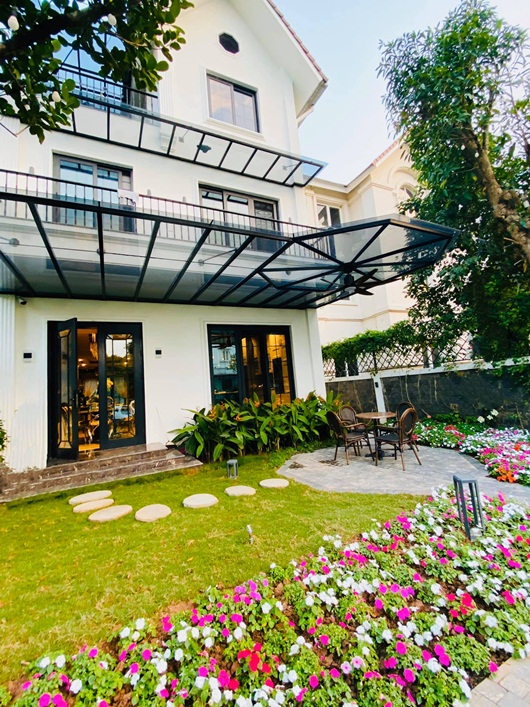 Không gian biệt thự của Lã Thanh Huyền không chỉ có một vườn hoa mà chỗ nào cũng thấy hoa lá, cỏ cây mát mắt.