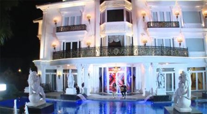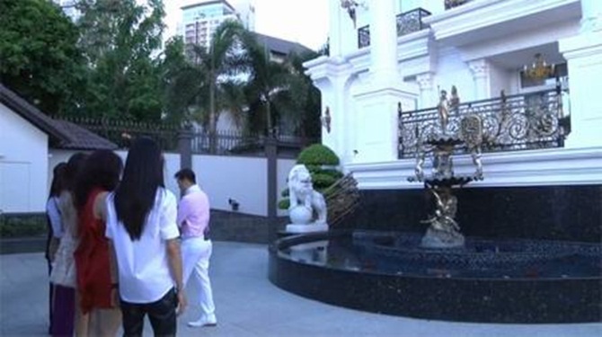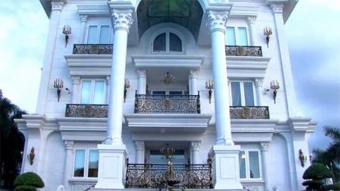 | Căn biệt thự đắt tiền nhìn từ hướng cổng. |