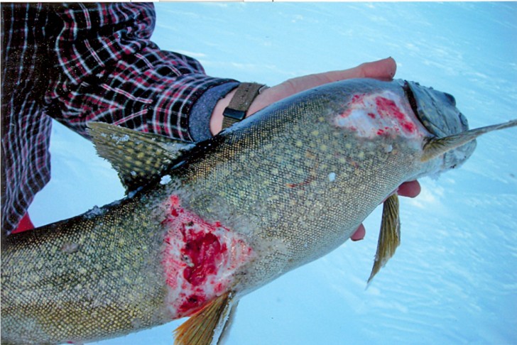 | Vết thương mà cá mút đã để lại trên cơ thể con vật khác. |