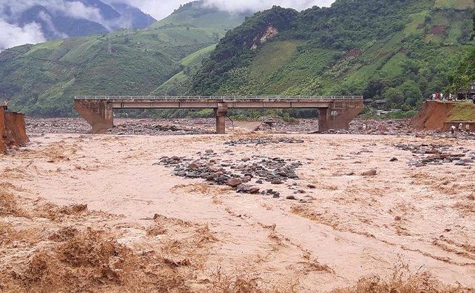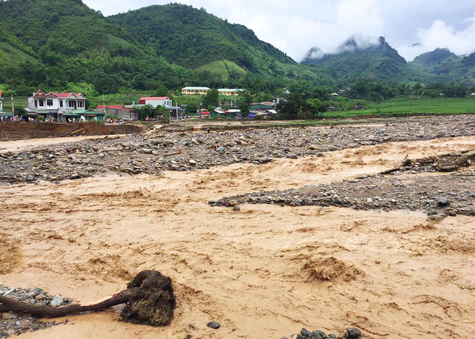 Huyện Mường La (Sơn La) có mưa lớn, làm xuất hiện lũ ống. Ảnh: VnExpress |