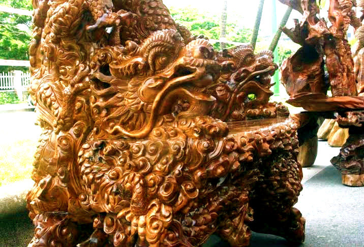Bộ bàn lũa từ gỗ gù hương - loại gỗ tinh dầu thuộc nhóm những loại gỗ quý hiếm của vùng núi đá Hà Giang, Lạng Sơn, Tuyên Quang - được chạm trổ tinh xảo rồng cuốn hổ ngồi thuộc sở hữu của một đại gia trẻ tuổi ở Chiêm Hóa, Tuyên Quang. Ảnh: Vietnamnet.