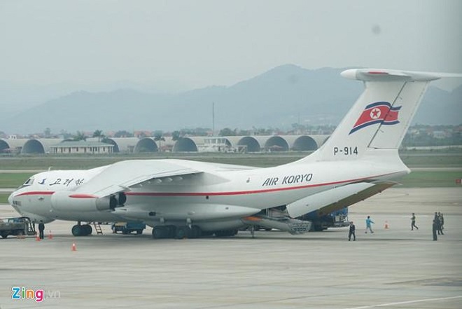 Vận tải cơ Il-76MD của hãng hàng không Air Koryo chở khoảng 100 nhân viên an ninh và hàng hoá của Triều Tiên đã hạ cánh xuống sân bay Nội Bài lúc 9h20.