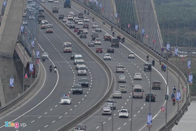 Đoàn xe của Triều Tiên di chuyển trên cầu Nhật Tân. Ảnh: Zing.vn |