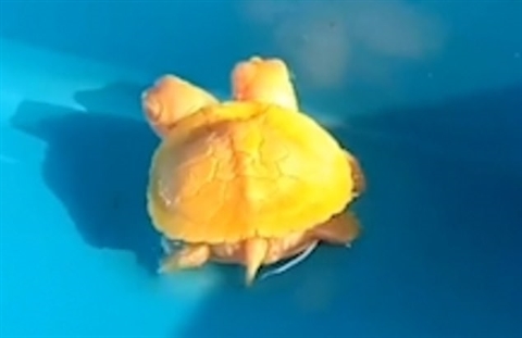 | Con rùa đột biến hai đầu có màu vàng cực quý hiếm. Ảnh: Baodatviet |
