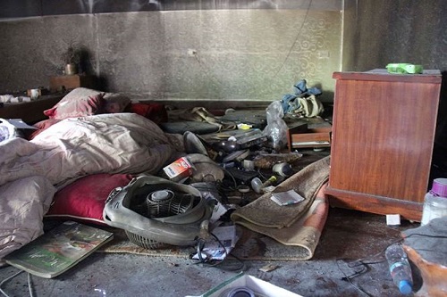 Các vật dụng đều bị cháy sém, bốc mùi khét lẹt.