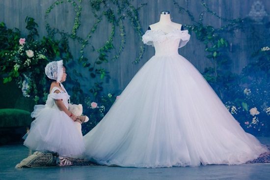 Mẫu váy cưới mà Thanh Tú diện khi bước vào lễ đường được lấy ý tưởng từ giấc mơ thuở bé của cô, đó là được diện chiếc váy cưới của nàng Lọ Lem bên cạnh chàng hoàng tử của đời mình. |