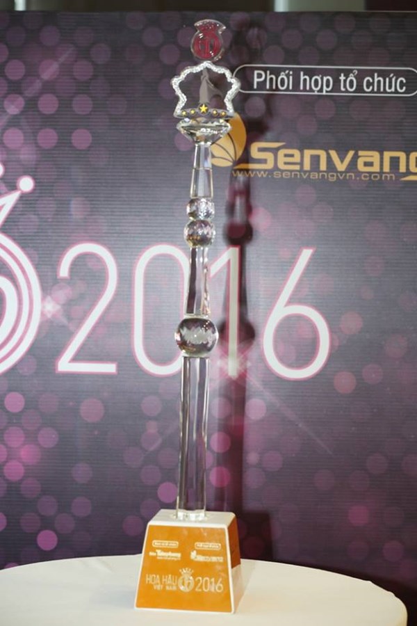 | Chiếc quyền trượng mới được làm hoàn toàn bằng pha lê và có biểu tượng hoa sen 3D được khắc chìm trong khối tròn. Theo chia sẻ từ BTC, khối tròn tượng trưng cho người phụ nữ thành công, tỏa sáng và viên mãn. Còn bông hoa sen là biểu tượng cho cốt cách người phụ nữ Việt Nam. |