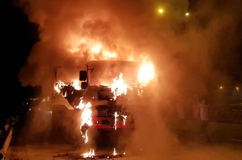 Tài xế liền tấp xe vào lề cùng hai người đi cùng nhảy ra thoát nạn. Chỉ trong phút chốc, lửa bao trùm cabin, cháy ngùn ngụt kèm khói đen bốc cao. Khoảng 30 phút sau, tài xế cùng người dân đã khống chế được ngọn lửa, tuy nhiên cabin xe đã bị thiêu rụi.